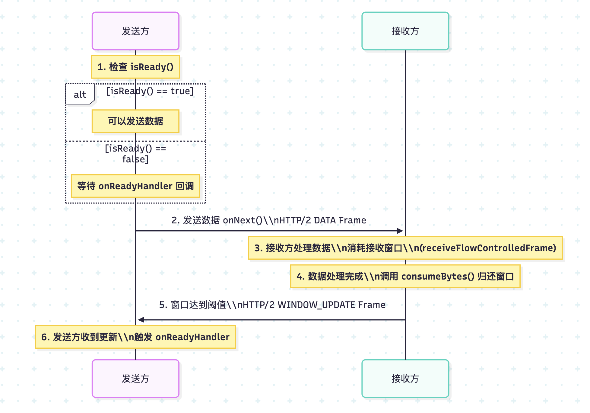 * 2. 数据接收时通过 receiveFlowControlledFrame 减少窗口大小